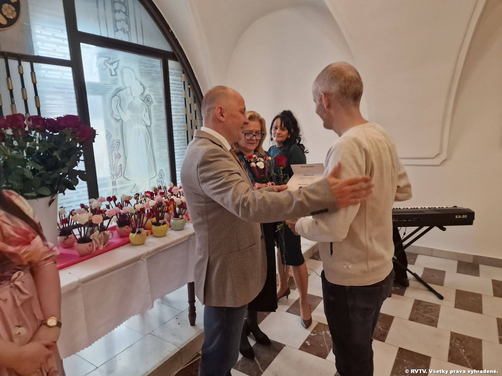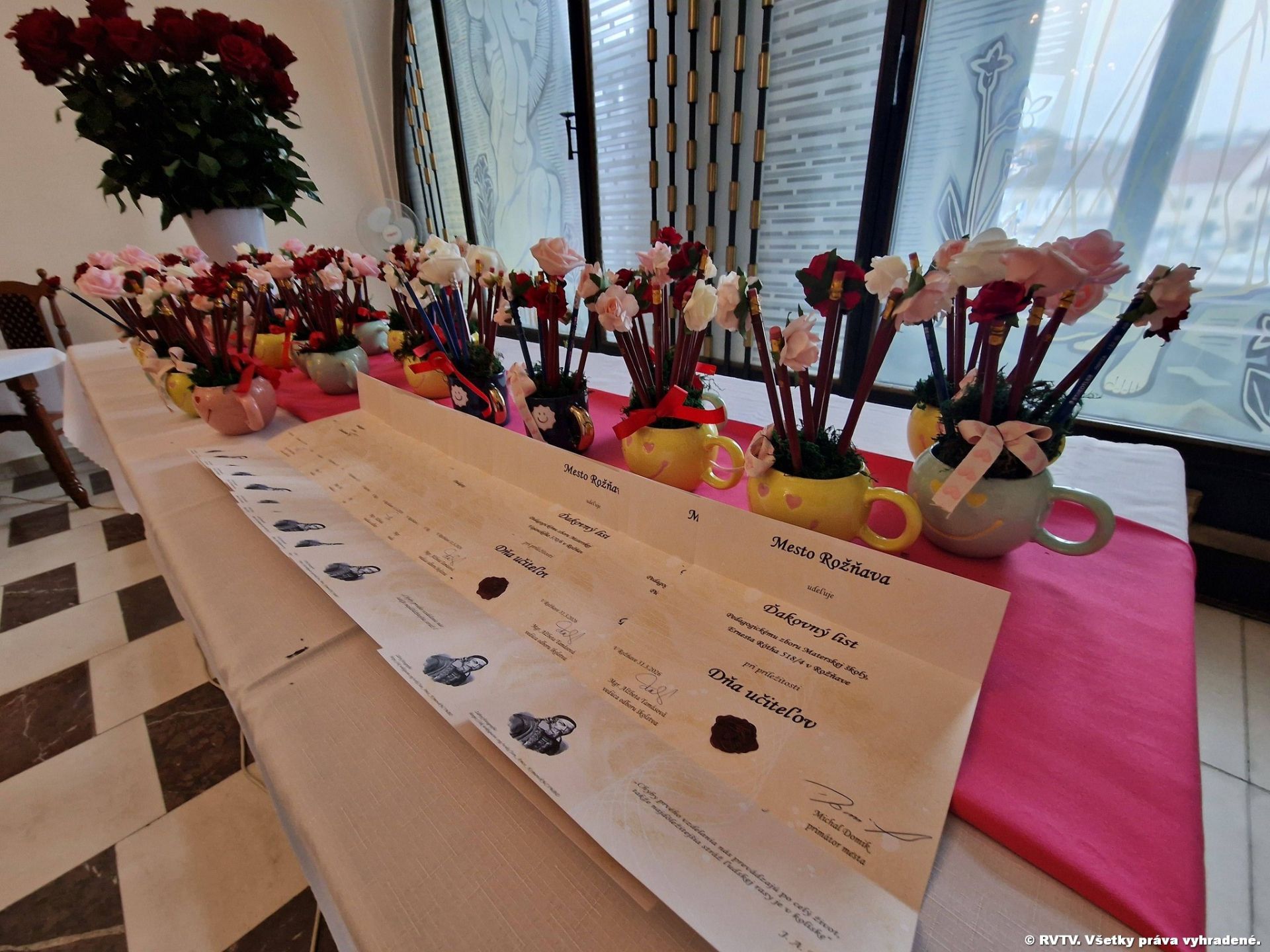 Po krátkom kultúrnom programe, ktoré pripravila ZUŠ v Rožňave odovzdal primátor mesta a vedúca odboru školstva prítomným učiteľom ďakovný list, ružu – ako symbol mesta a darček. Na záver im popriali k ich sviatku pevné zdravie, správnu motiváciu, veľa síl, entuziazmu, optimizmu a tvorivého myslenia. Nech sa im podarí naplniť krédo Jána Ámosa Komenského: