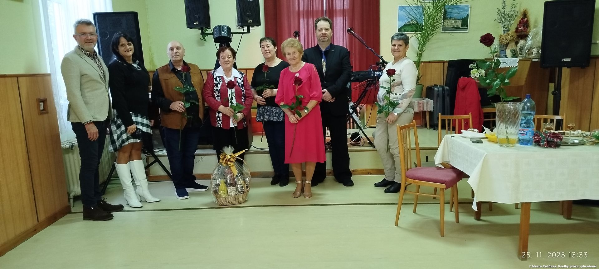 Oslavy „Jubilantov za II. polrok 2025“ sa konali v priestoroch denného centra v spolupráci s mestom Rožňava. Naše pozvanie prijal poslanec MZ pán Miroslav Demény, ktorý zahájil program krátkym príhovorom a následne odovzdal všetkým jubilantom pamätný list mesta Rožňava, malú pozornosť a kvet. Po oficiálnej časti prišiel čas na spoločnú fotografiu a pohostenie. Po spoločnej fotografii nasledovala tanečná zábava, o ktorú sa postarali Marika a Gabi.