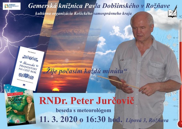 Gemerská knižnica Pavla Dobšinského v Rožňave, kultúrna organizácia Košického samosprávneho kraja pripravila v rámci Marca – mesiaca knihy pre širokú verejnosť v stredu 11.marca 2020 o 16:30 hod. stretnutie s významným slovenským meteorológom RNDr. Petrom Jurčovičom, ktorý vo svojom odbore nepochybne patrí k špičke.