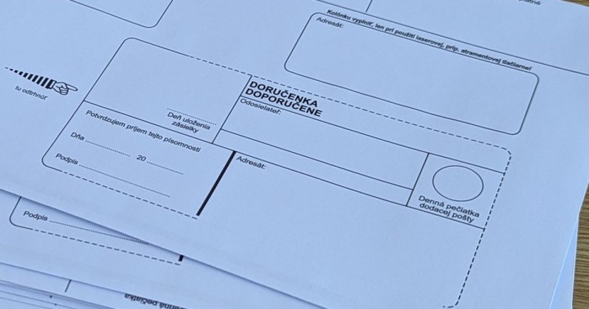 má uložené oznámenie o doporučenej zásielke na prevzatie v kancelárii 1. kontaktu Mestského úradu v Rožňave, evidencia obyvateľstva.