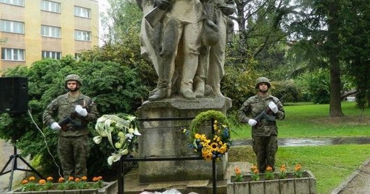 pri pamätníku oslobodenia v parku na Hviezdoslavovej ulici v Rožňave