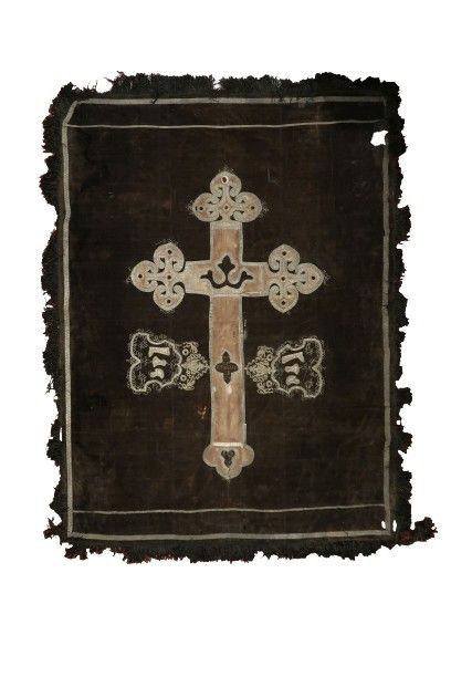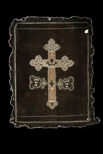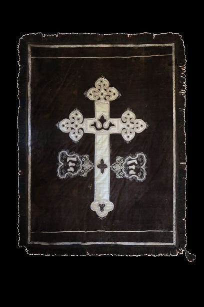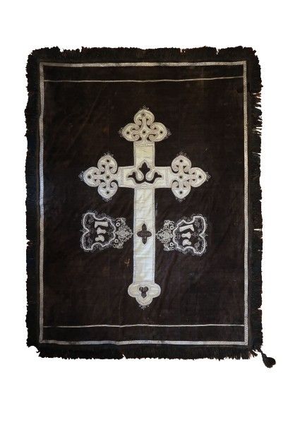 Prikrývka je ušitá z dvoch vrstiev tkaniny – vrchnú vrstvu tvorí zamat tmavohnedej farby a spodnú vrstvu tkanina plátnovej väzby, pravdepodobne ľan zafarbený na tmavomodro. Na vrchnej strane je zobrazený kríž vytvorený aplikáciou ozdobných prámikov z kovových nití, výšivky, kovových flitrov a hodvábnej tkaniny. Pod ramenami kríža po oboch stranách sú z kovových nití a prámikov vyšité štíty so symbolmi čižmárskeho remesla – čižma, hladidlo a nôž. Po obvode je našitý ozdobný prámik a strapce. Prikrývka má dĺžku 2,2 m a šírku 1,6 m.