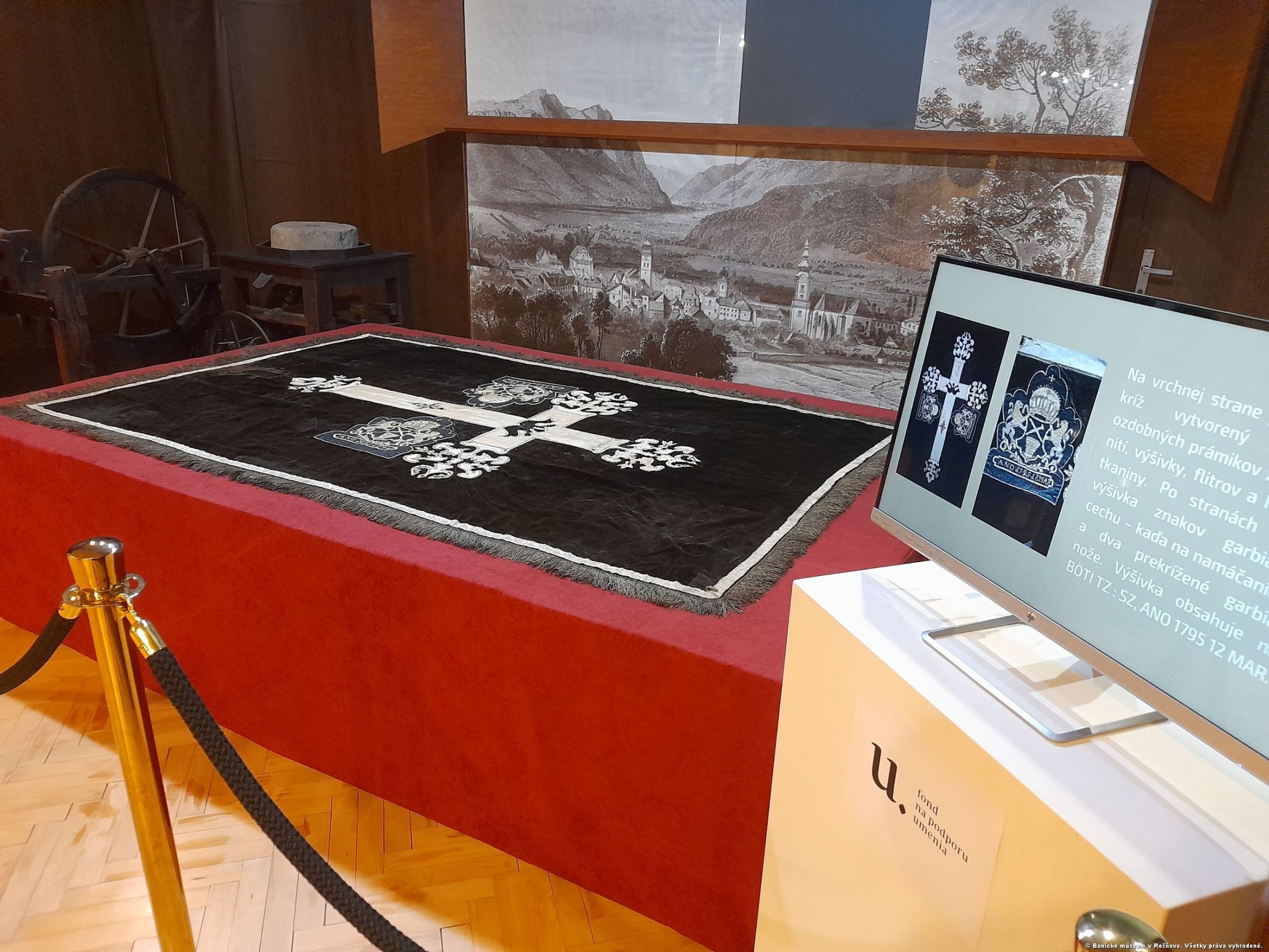 V ošetrovaní zbierkových predmetov pokračujeme a úspešne bol podporený aj projekt reštaurovania druhej prikrývky, ktorá patrila cechu garbiarov. Prikrývka je vyhotovená z čierneho zamatu podšitá hrubšou ľanovou tkaninou, jej dĺžka je 2,5 m a šírka 1,6 m. Na vrchnej strane je zobrazený kríž vytvorený aplikáciou ozdobných prámikov a hodvábnej látky. Po stranách kríža je výšivka z kovových nití a flitrov znázorňujúca cechové znaky – kaďa na namáčanie kože a dva prekrížené garbiarske nože. Výšivka je doplnená nápismi: BÖTI TZ : SZ, ANO 1795 12 MAR. Po celom obvode prikrývky je našitý ozdobný prámik a strapce.
